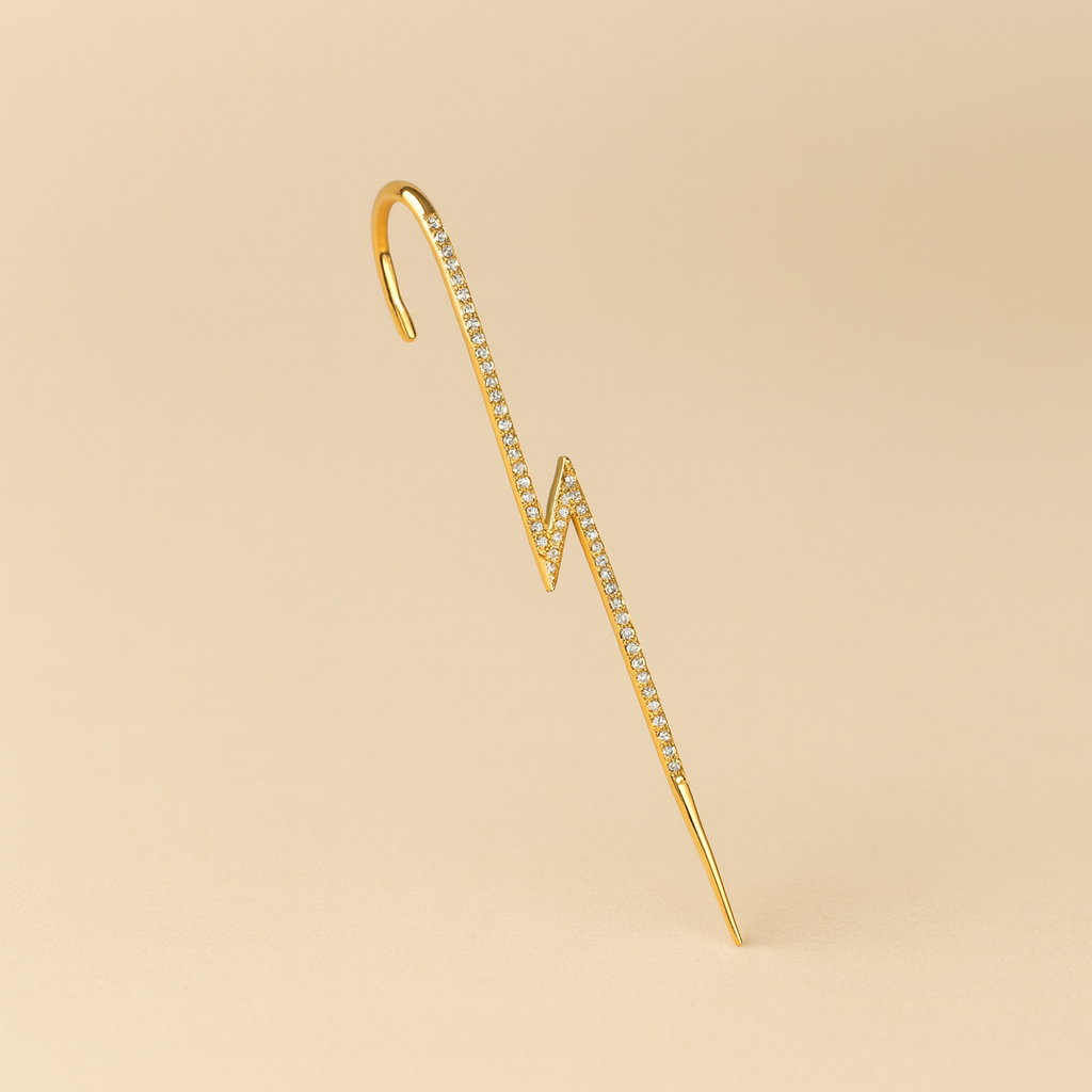 The Lightning Ear Clip features a sleek lightning bolt silhouette, encrusted with shimmering zircon stones that catch the light with every turn. Fierce, stylish, and effortlessly eye-catching, it's the perfect statement for those who love jewellery with attitude.